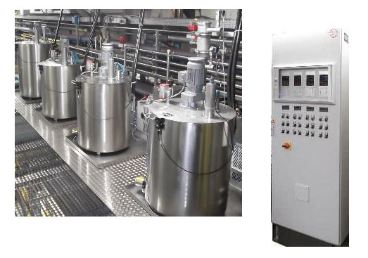 MCS Systeme für Lacke und Farben mit Heiz- / Kühlfunktion, Rührwerk und automatischer Nachdosierung, z.B. für UV-, Dispersions- und Metalliclacke.